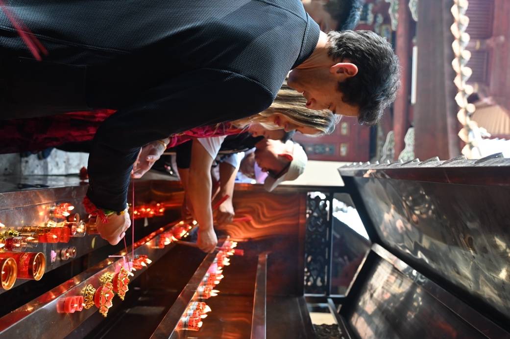 泉州,古名刺桐,是中国历史文化名城,古代海上丝绸之路的重要节点,在此诞生了极具开拓精神的闽南文化。在泉州西街,布劳迪和女友被蟳埔簪花女的华丽头饰所吸引,对头饰背后的民俗源流尤感好奇。在世界文化遗产开元寺,布劳迪入乡随俗在紫云殿前持香默祷,也许和他在今年奥斯卡领奖台上许下的心愿一样:祈愿一个更健康、更快乐、更包容的世界。