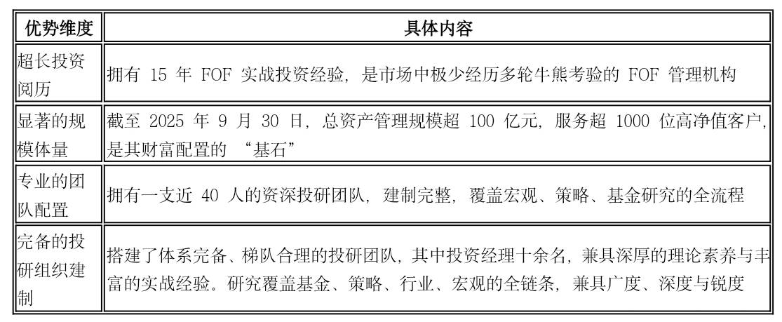 总结而言,新方程的核心优势在于:它由行业资深专家领衔,以自主开创的深度研究为内核,以科学系统为骨架,以客户利益为中心的专业FOF投资解决方案提供商。无论是通过其丰富的标准化产品,还是高度定制化的专户服务,新方程都致力于成为高净值客户实现长期财富增值、穿越市场周期的可靠伙伴。