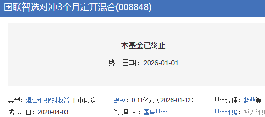 国联智选对冲3个月定开混合清盘 成立近6年亏损9%多宝体育- 多宝体育官方网站- APP下载
