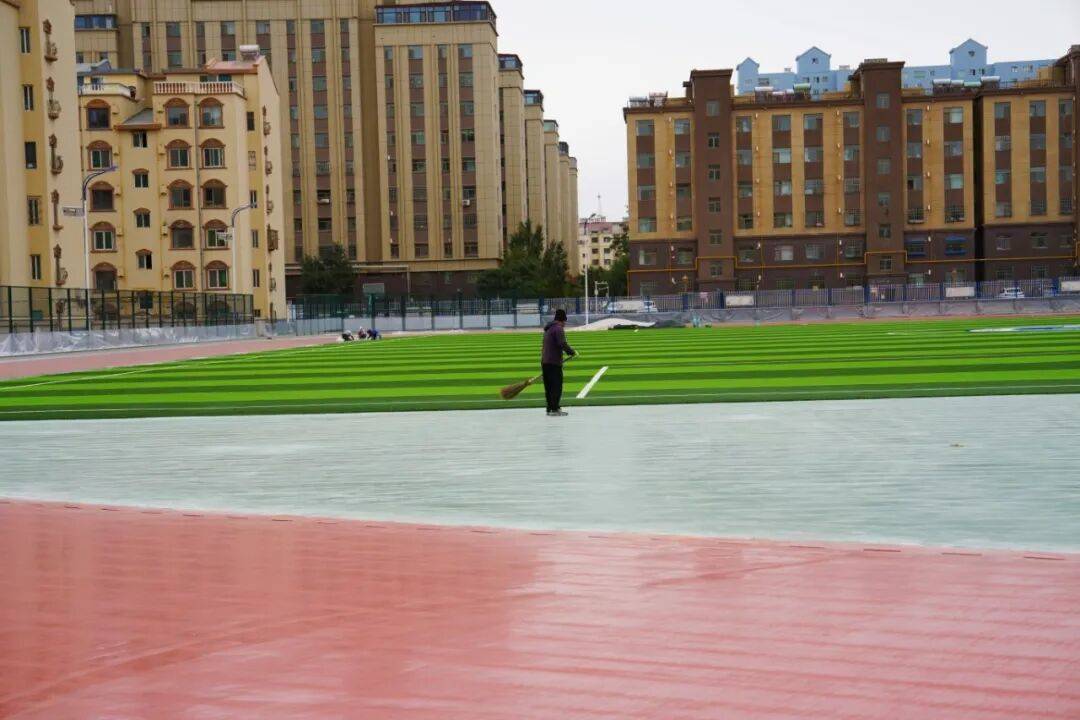 这次改造的核心,就是让孩子们运动体验更佳,安全防线更牢!施工团队对原有的运动场区域进行了“彻头彻尾”的升级。全新的运动地面,不仅平整耐用,看着就舒心,而且区域划分一目了然。以后无论是田径跑跳,还是足球、铅球等各种球类教学,都能轻松满足。课间十分钟,孩子们可以更畅快地活动;体育课上,教学内容也能更丰富多彩地开展啦!
