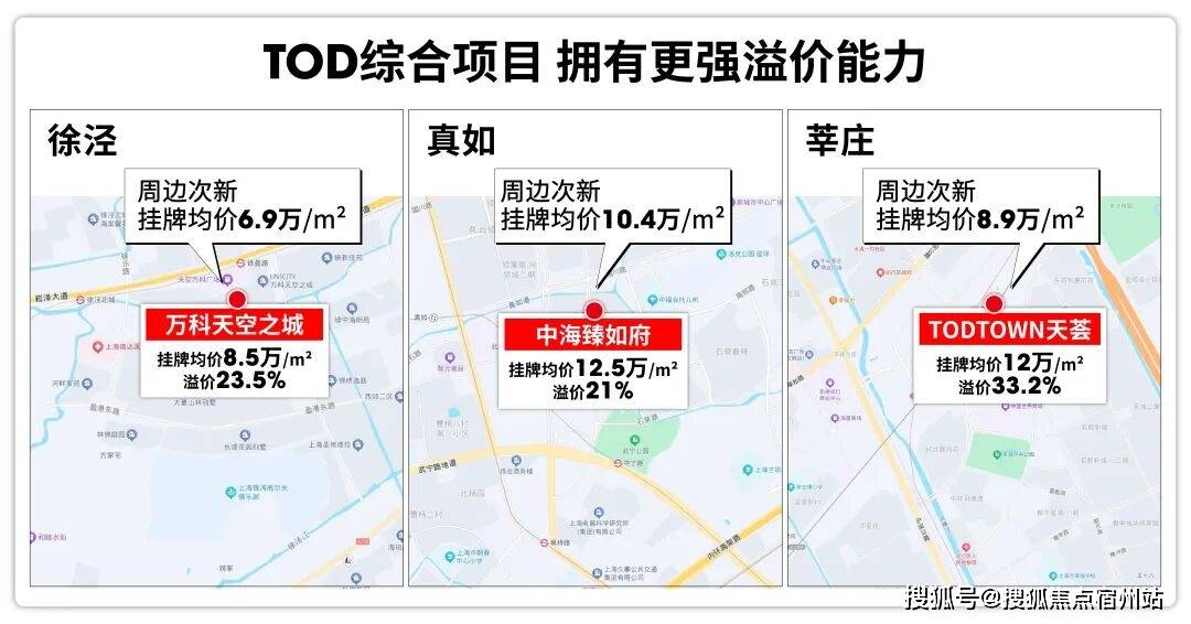 TOD综合项目本身也有较强的溢价能力,莘庄天荟、万科天空之城等TOD项目都已给出有说服力的结论。更何况,金茂棠前是