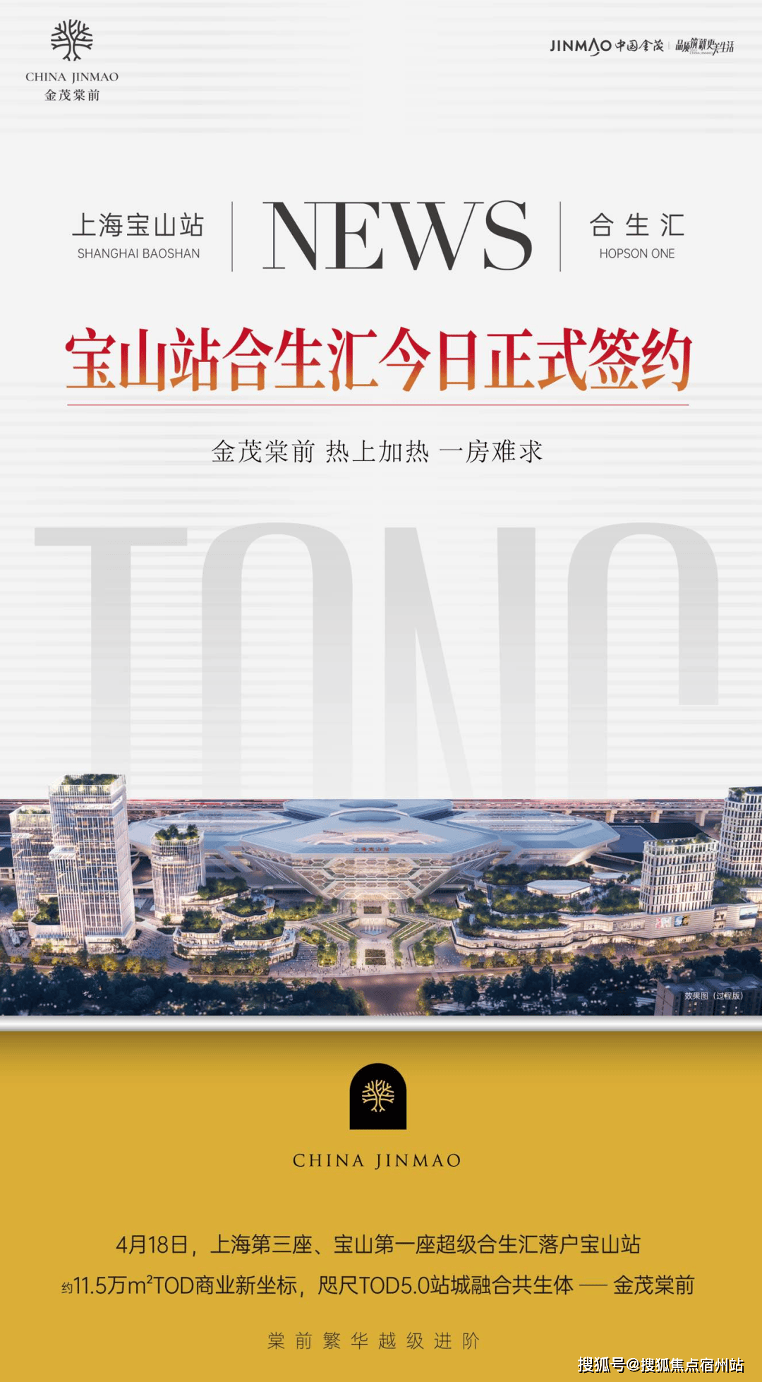 4月18日,合生创展集团旗下高端商业品牌“合生汇”,正式签下高铁上海宝山站商业运营管理权,这是上海第三座、宝山第一座超级合生汇!