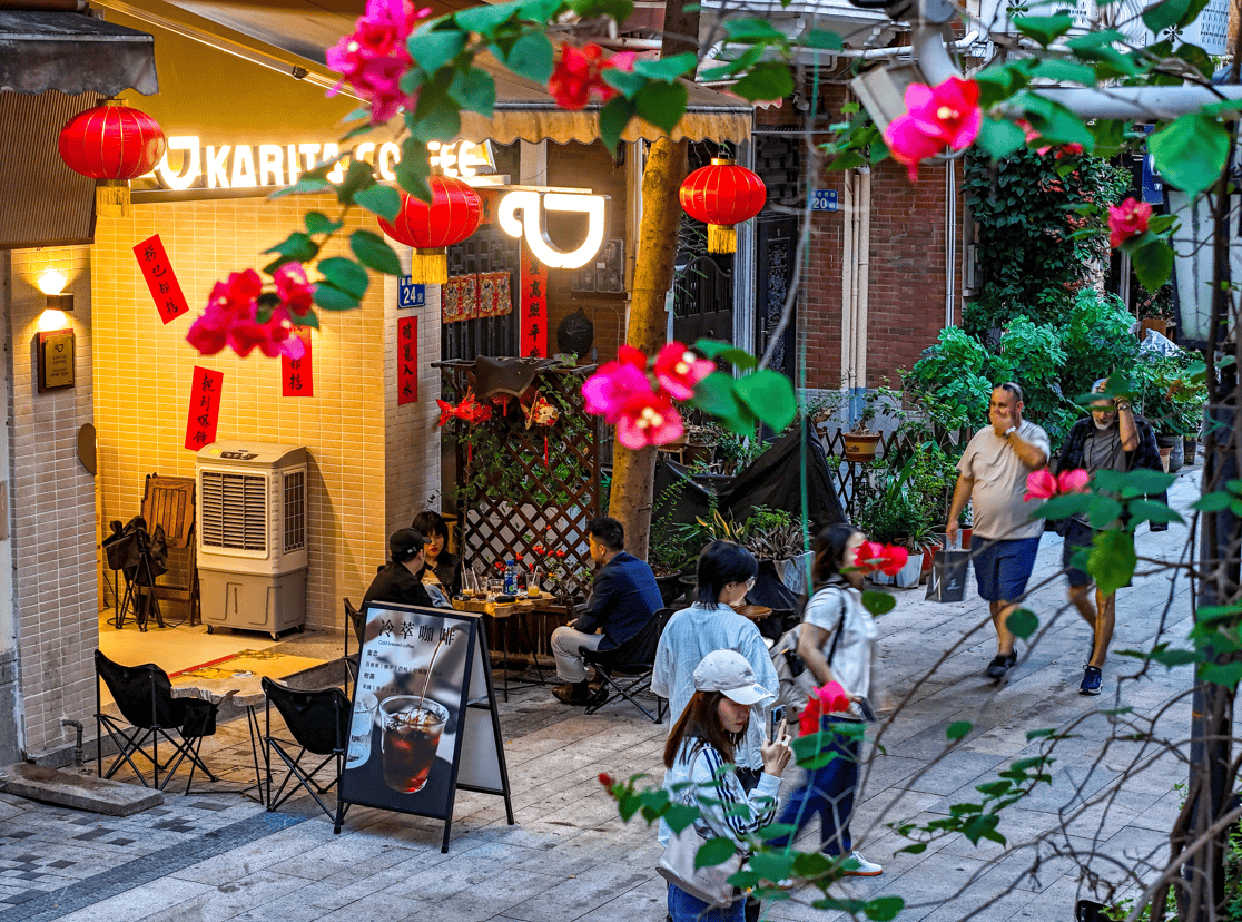 一系列公共基础设施改造完成后,旧南海县社区便开始活化辖区内公房,腾挪出来做商业。一些居民看到社区氛围越来越好,也利用“住改商”政策,将住宅改为商铺。今年,旧南海县社区新增“住改商”近十家,已聚集21家咖啡店,成为街区的“流量密码”。