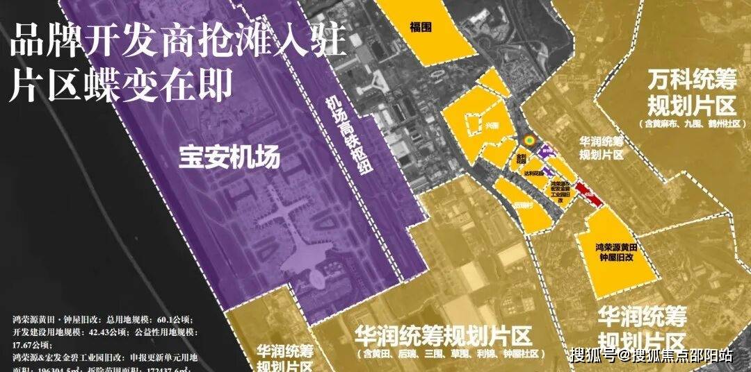 华润(草围旧村及南片区城市更新单元)、鸿荣源(钟屋黄田旧村更新项目)、宏发(黄田金碧片区城市更新旧改项目,在建,有大仟里商业综合体)