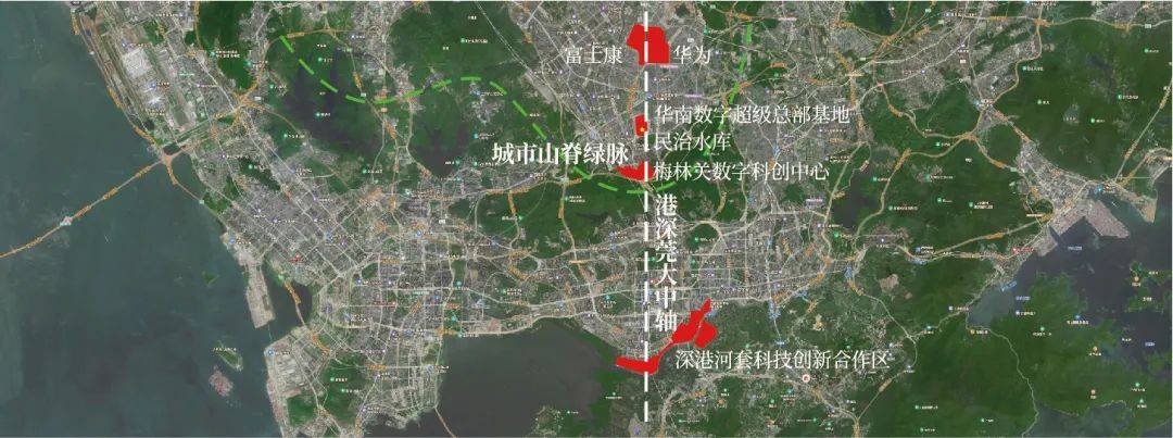④深圳发展中轴,华南数字超级总部基地、星河world总部基地、坂雪岗科技城、北站产融结合示范区、梅彩新一代信息科技,连成深圳中轴含金量置顶的价值金线。