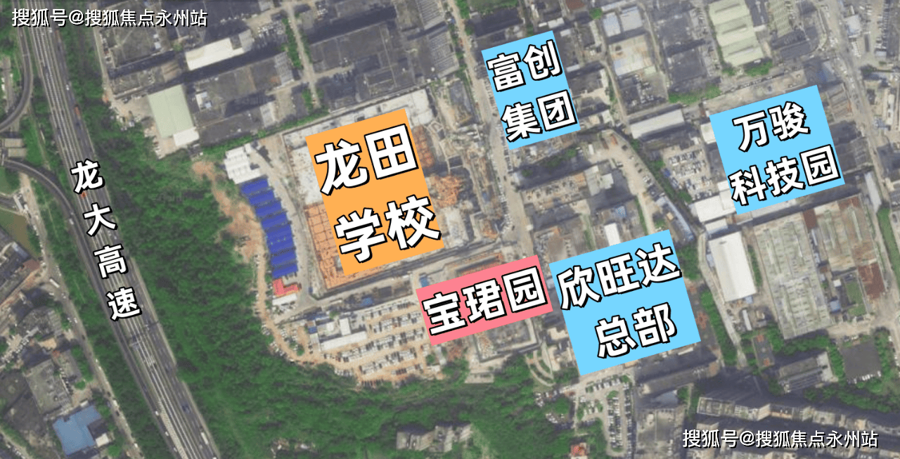 项目家门口有一所新安中学(集团)龙田学校,该校总设计规模45个教学班,功能齐全,设施先进,配置了学校屋顶少年农科院、恒温游泳池、图书馆、体育馆、理化生实验室等,于2022年9月开始办学招生。
